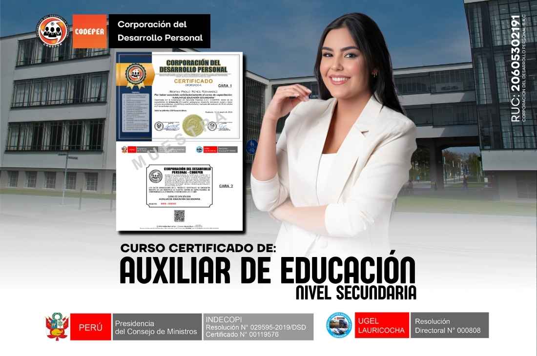 El auxiliar de educación presta apoyo al docente en sus actividades formativas, disciplinarias, actividades extracurriculares y el trabajo con la comunidad. Contribuye con el desarrollo de la IE participando en la formación integral de los estudiantes. Desarrollar competencias, capacidades y habilidades que le permitan incorporar competencias únicas e innovadoras, que cambiará tu manera de trabajar en el aula.